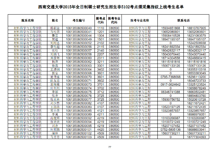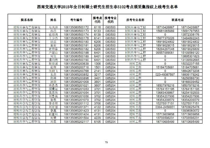 太阳集团tyc1512015年全日制硕士研究生招生非5102考点须采集指纹上线考生名单