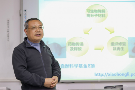 第二位上台宣讲的是李孝红教授。李教授开门见山,先介绍了自己追逐学术的生涯,向各位阐述了自己的主要研究的方向,即可生物降解的高分子材料在药物传递及释放、笔记组织修复及再生的应用。为了便于让大家理解,李教授以治疗糖尿病为例具体阐述了该高分子材料的具体应用。关于培养员工方面,教授总结了三句话:引导员工的学术生涯,训练员工的创新思维,培养员工的科研方法。
