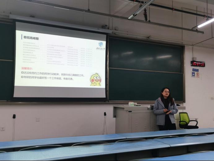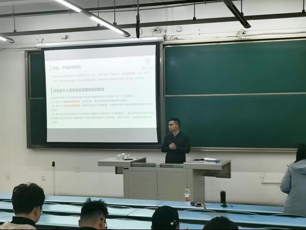 最后,黄德明老师提醒同学们在临近毕业期间,依然要规范自身行为,遵守公司规定,做到文明离校。“祝考研同学复试顺利,进入理想公司;找工作的同学找到理想工作!”,大会在两位老师的祝福后圆满结束。