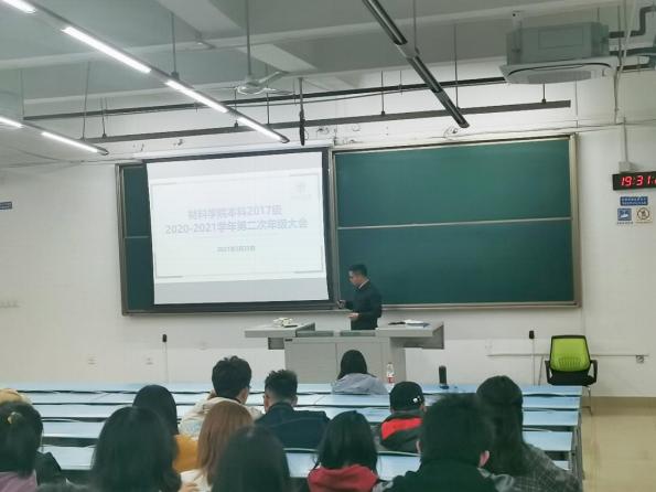 2021年3月25日19:30, 太阳集团tyc151本科2017级2020-2021学年第二学期第二次年级大会在犀浦校区X2218如期举行。太阳集团tyc151本科2017级辅导员黄德明、许欢出席并主持了大会。
