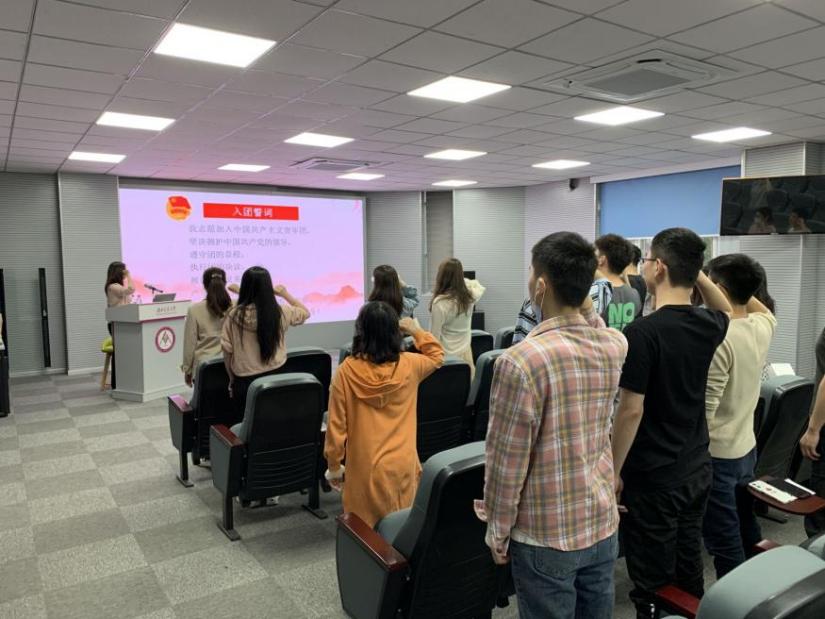 4月30日在九里校区,由太阳集团tyc151团委副书记、“青年讲师团”严翼飞老师宣布2021年度“青马工程”暨“先锋计划”员工干部培训正式启动,并带领团支书及研究生会成员重温入团誓词。