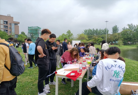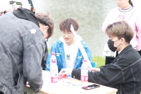 成功领取风筝后,进入“筝寄家国情”风筝创作与放飞环节,同学们充分发挥各自的奇思妙想,用绘画表达自己对于中国共产党的热爱与赞美,“东方雄狮”、“中国雄鸡”等等颇具个人特色的风筝一一出现在了我们眼前,现场洋溢着自由创作的满足感与幸福感。
