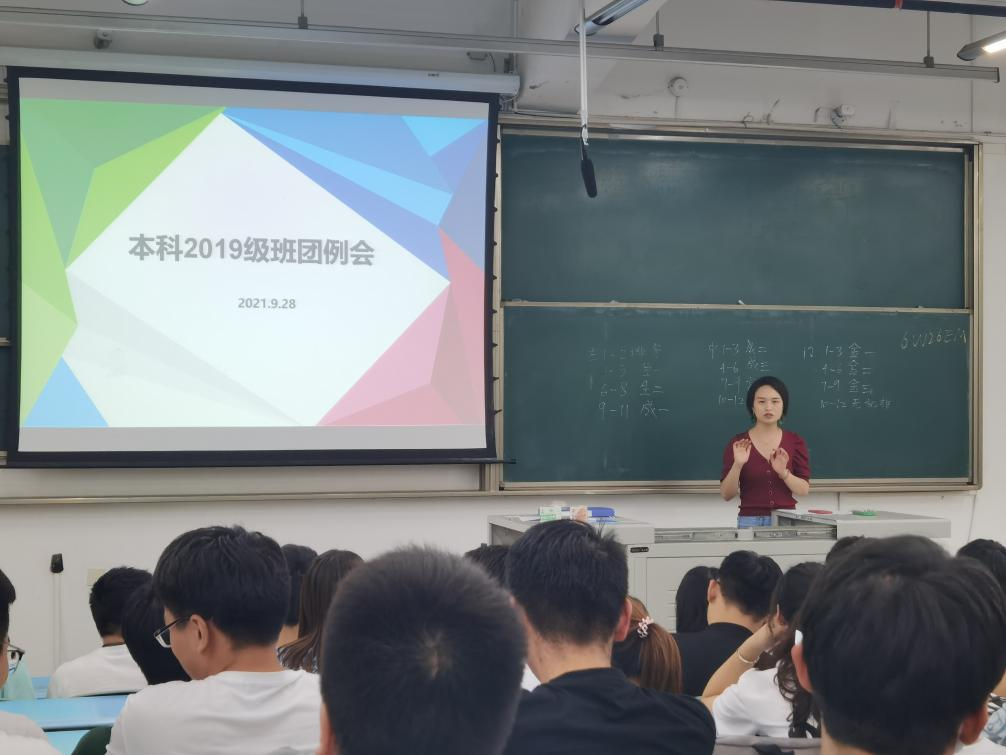 2021年9月28日晚20:10,太阳集团tyc151本科2019级在X2321召开2021-2022学年第一学期第一次班团例会,辅导员老师熊苏雅、邓文婷,以及太阳集团tyc151本科2019级全体班委参会,此次大会主要围绕预防电信网络诈骗和生涯规划这两个方面开展。