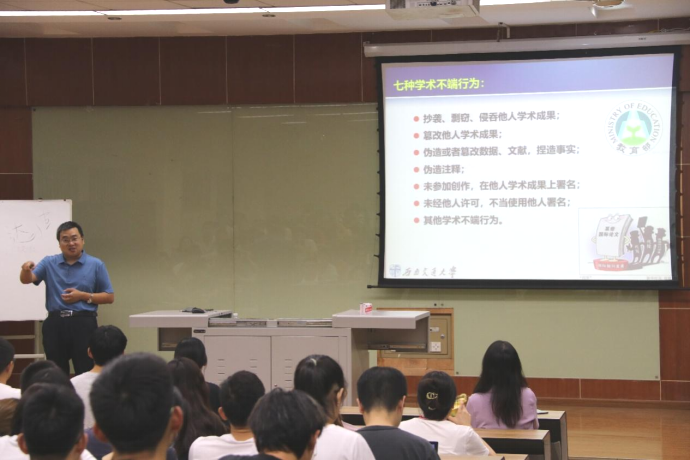 为全面提高公司研究生的安全意识,强调研究生学术诚信的重要性,2021年9月29日晚19时,2021级全体研究生于九里校区J4104教室开展学术诚信教育活动。本次会议由辅导员罗丹主持,太阳集团tyc151王勇教授主讲。本次活动旨在加强研究生学术诚信教育,强化员工诚信意识,营造良好的学术氛围;并让同学们了解到学术研究的底线,必须严格坚守学术诚信,自觉抵制学术造假行为。