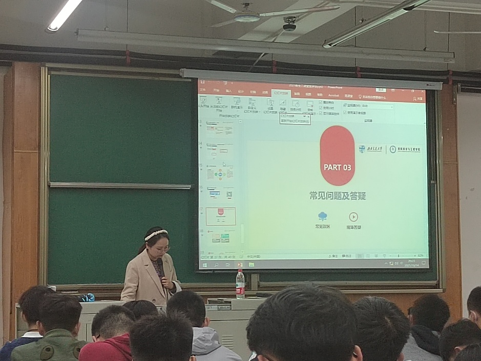 宣讲开始,团建中心第二课堂运营中心部长郎珅涛同学对公司第二课堂成绩单制度作总体介绍,包括第二课堂的重要性、相关制度与规定、选课途径以及公司和公司第二课堂特色活动的介绍,使同学们对第二课堂有了更全面的了解,指导新生正确规划课余时间,多方位提升自己的能力。