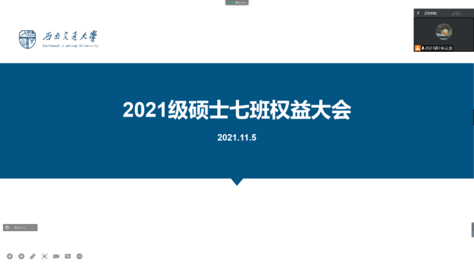 2021年11月5日,2021级硕士7班,通过腾讯会议的形式开展权益大会,班级全体成员积极参与,无缺席人员。