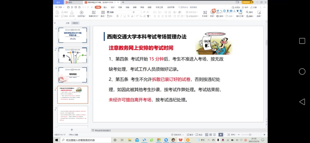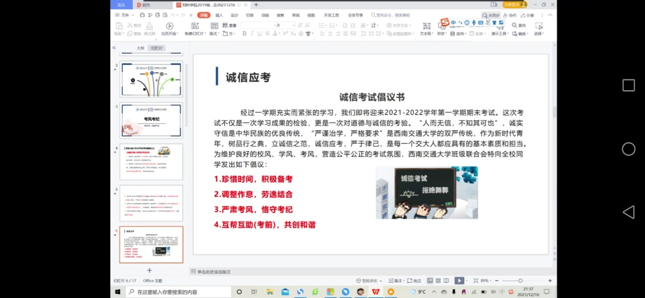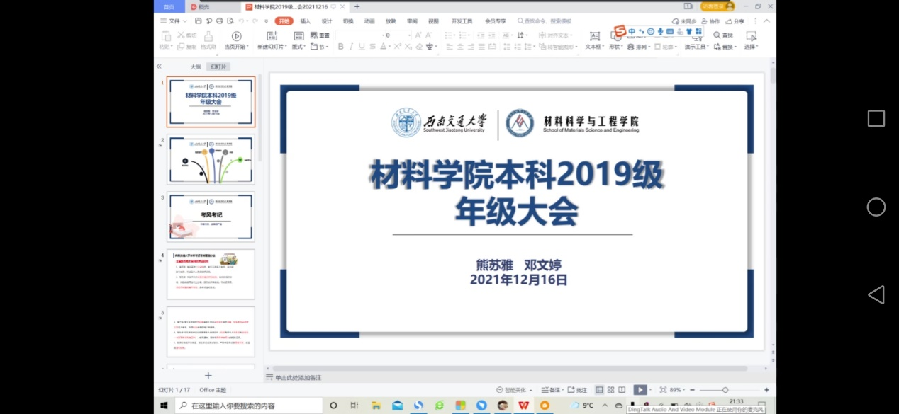 太阳集团tyc151本科2019级2021-2022学年第六次年级大会于2021年12月16日晚21:30在钉钉平台顺利召开。旨在加强诚信考试教育、防疫安全、网络电信诈骗安全、返乡安全、强调宿舍管理事项。2019级本科全体同学参与大会,2019级辅导员邓文婷、熊苏雅出席并主持。