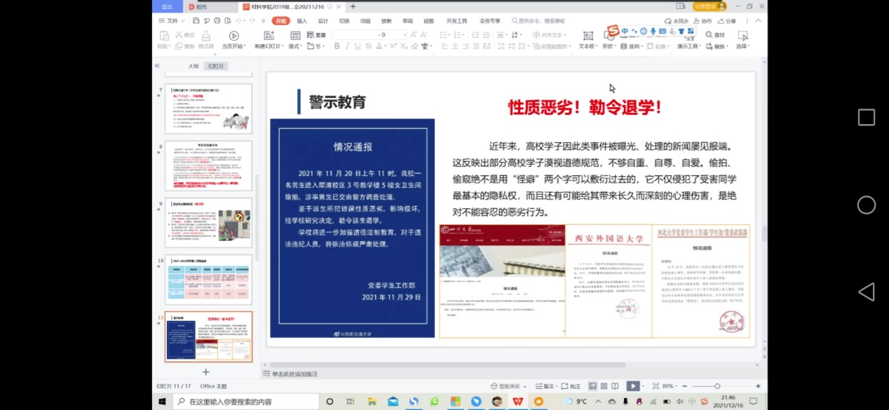 针对公司近期出现的严重违背老员工素质道德的偷拍事件,熊苏雅强调要杜绝类似事件的发生。其次是针对最近出现的各种诈骗群,熊苏雅提醒同学们要冷静看待,理性分析,多与辅导员以及同学确认其发布内容的真实性。