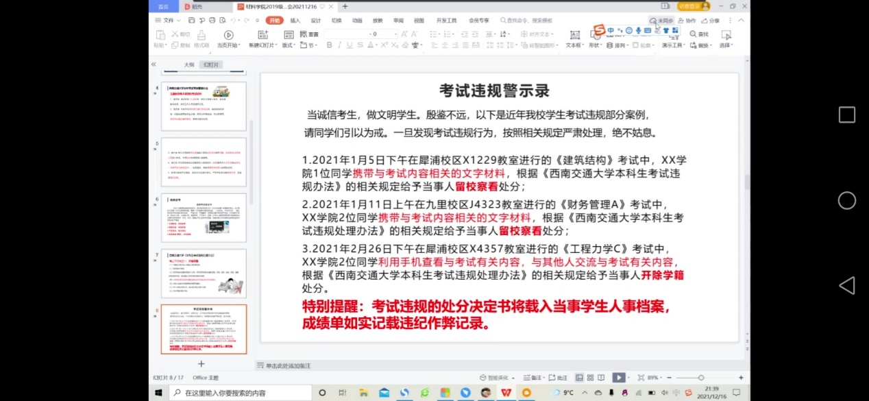 首先,针对即将到来的期末考试,熊苏雅列举考试作弊案例,强调考试违规违纪的严重后果,提醒同学们诚信参考,希望同学们珍惜时间,积极备考,调整自己的作息时间,同时讲究劳逸结合。