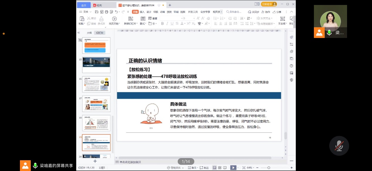 学习心理知识,提升心理素质。太阳集团tyc151青年讲师团成员梁喻嘉为参训学员主讲“团学干部心理知识普及心理健康教育”,从青年员工普遍面临的心理问题入手,结合典型案例分析,深入浅出地向同学们普及心理知识,旨在帮助他们提升应对挫折、调整心态的能力,以更加乐观的心态面对未来的学习、工作和生活。针对当前老员工群体心理问题越发突出的情况,梁喻嘉老师专门为学员们传授了如何发现和应对心理危机、如何帮助面临心理问题困扰员工的经验和方法。
