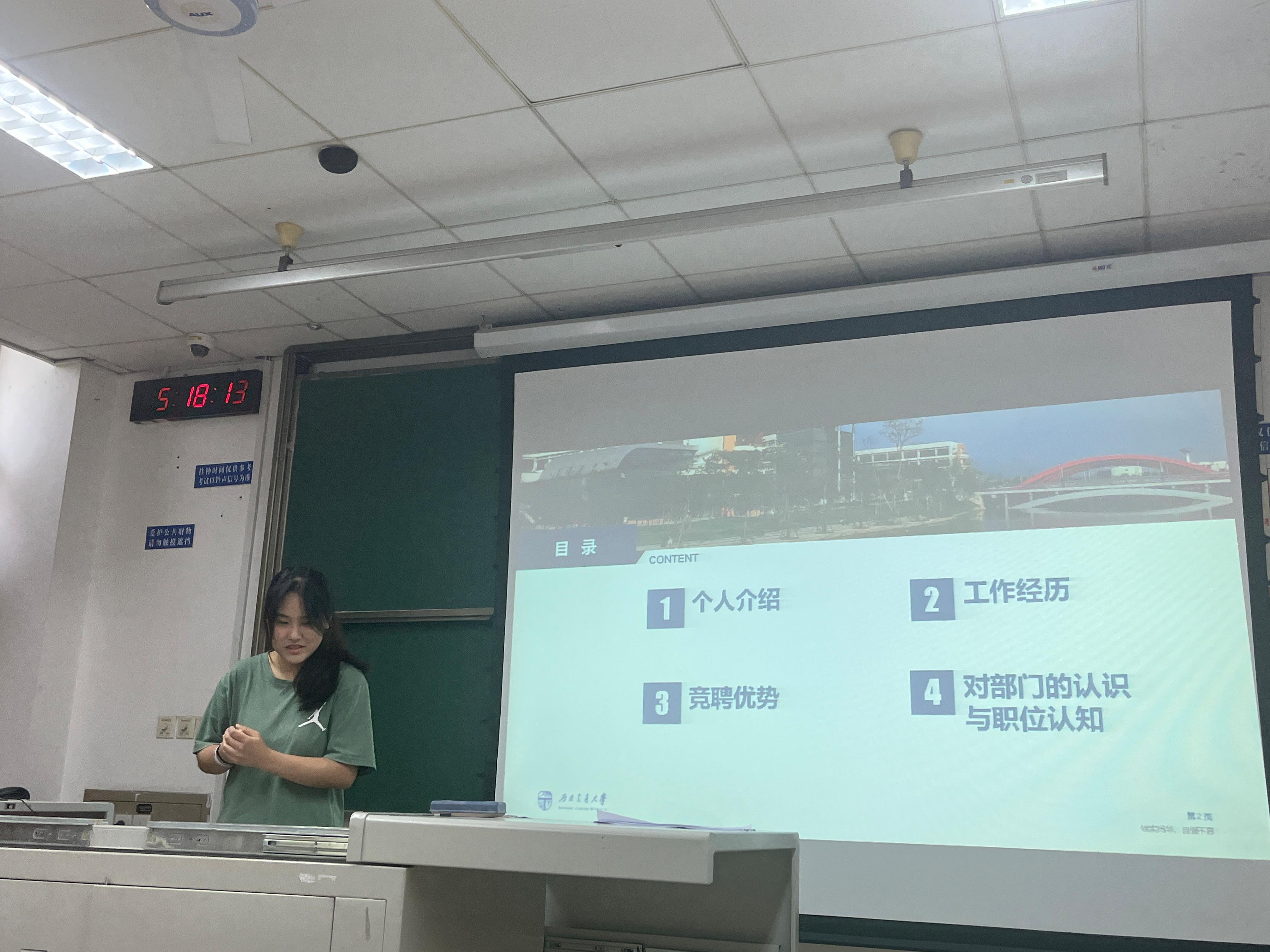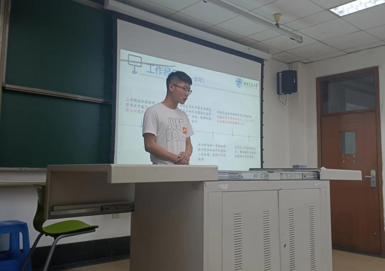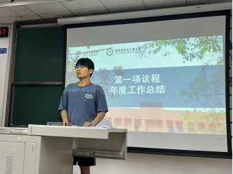 会议第二项,各部门部长进行述职汇报。文体部部长蔡晓君总结了文体部在各大体育赛事举办过程中的收获和不足;学术生活部部长孟昊天总结了部门举办的各类活动,以及个人收获;办公室主任孔德港详细论述了部门负责的特色活动;最后宣传部部长陈睿铎提出一些如何协同各部门做好工作的建议。