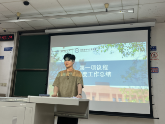 会议第一项,主席团代表胡庆丹进行了述职汇报。胡庆丹同志总结材料研会在过去的一年的工作中不断完善干部培养机制、精进组织建设机制、探索组织协同机制、健全同学参与机制、规范干部述职机制和建立活动反馈机制。在服务员工,引领人才方面,胡庆丹同志从丰富校园文化、提高学术创新能力和维护同学正当权益等五大板块对材料研会全心全意为同学服务做了总结。