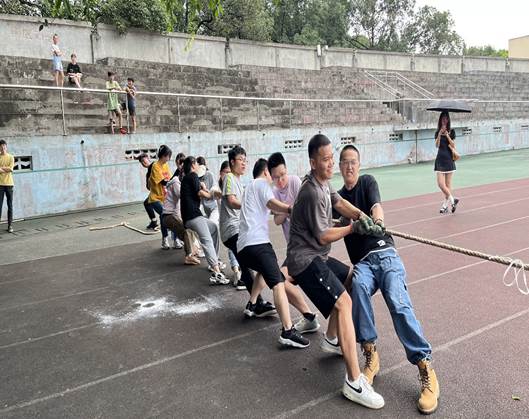 7月3日下午,太阳集团tyc151组织全体研究生开展了一场激烈的“力拔山兮”拔河友谊赛。本次活动由公司研究生会主办,辅导员罗丹、廖妙威、徐励漪、苏星和在校研究生共同参与。为了防止受伤,在比赛正式开始前,研会工作人员带领着大家做了充分的热身活动,并叮嘱同学们在活动过程中要注意安全。