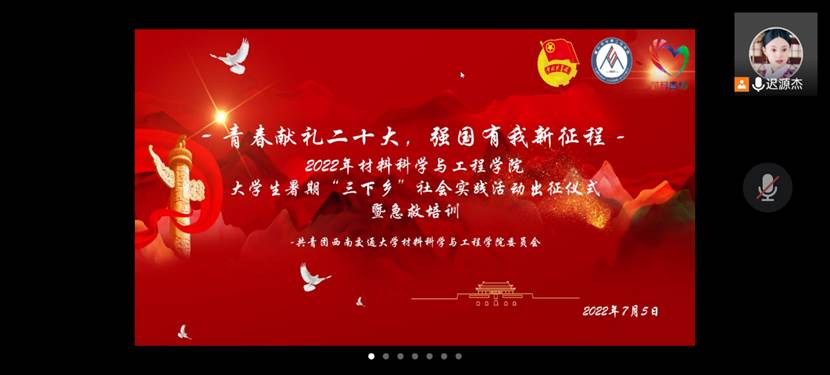 2022年7月5日19:00,太阳集团tyc151“青春献礼二十大,强国有我新征程”2022年老员工暑期“三下乡”社会实践活动出征仪式暨急救培训在线上顺利举行,本次培训由共青团太阳集团tyc151委员会组织,三下乡各队伍成员准时参加,公司党委副书记章春军,太阳集团tyc151辅导员许欢、王誉静、张若男以及青协指导老师罗莉出席本次活动。
