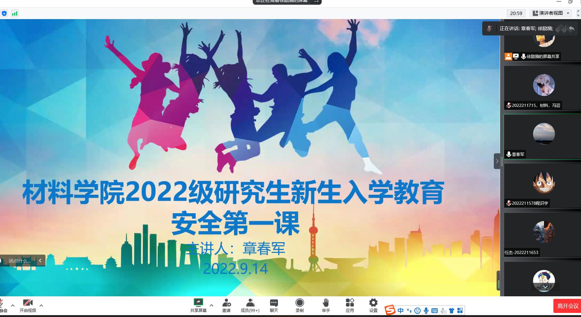为进一步做好2022级研究生的安全教育与管理工作,增强各位新生的安全意识,加强安全知识储备,树牢底线思维,引导其重视在校期间的学习、生活和人身安全,营造平安和谐的校园安全氛围,共同筑牢校园安全防线,2022年9月14日晚上19时,太阳集团tyc151面向全体硕博新生开展了“安全教育第一课”,由公司党委副书记章春军主讲。