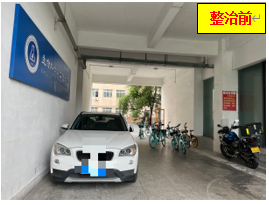 九里校区3号楼东南门处常有汽车违规停放在中庭通道、汽车在未划线且妨碍消防通道的门口处随意停放、以及摩托车、自行车在消防通道处违规停放的情况,消防通道堵塞不仅阻碍通行,还存在较大安全隐患。为此,公司学生工作组和学院综合办公室联合开展专项整治行动,通过摆放禁停标识和引导牌、开展相关公示公告或点对点告知,强化公司师生的安全意识。在此基础上,公司组织研究生在消防通道摆放路障锥桶、给违规停放汽车发放告知单、安排党员干部值守执勤和检查规整。消防通道整治工作效果明显,此项工作的成功开展不仅为师生创造了更平安的环境,还提高了全院师生的消防安全意识。
