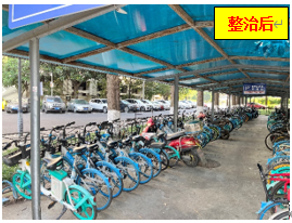 此外,公司还采取了一套组合拳:(1)通过年级大会对员工开展公示公告教育;(2)向公司全体师生发出规范非机动车停放的倡议;(3)制作并摆放警示标识和引导牌;(4)积极联合生命科学与工程公司共同发力;(5)开展日常检查和规整工作。通过多措并举,车棚整治工作效果明显,乱停乱放现象已不复存在,环境整洁层度大幅提升。