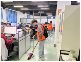员工工位区是研究生勤奋学习、迸发科研灵感的重要场所,干净整洁的学习环境有助于舒畅身心、提高工作效率。为打造干净整洁的自习区,营造温馨舒适的学习氛围,公司每周组织开展“集体劳动日”活动,由研究生党建中心组织安排,党支部承包片区,党员负责制,员工工位区域值班制度全覆盖。各党支部的党员同志发挥先锋模范作用,带领所负责区域同学主动打扫卫生,自觉维护工位整洁。通过同学们的努力,研究生工位区域环境焕然一新。整治研究生自习区,一方面创造了更规范的学习环境,另一方面引导研究生通过劳动实践掌握劳动技能、感悟劳动价值、涵养劳动情怀。