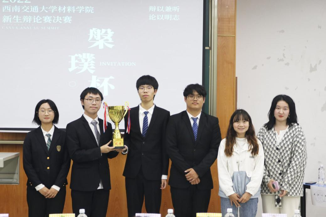 经过评委的严格评判,材料9班摘得了本次2022级材料“槃璞杯”辩论赛的桂冠。随后,罗莉老师分别为材料9班、生医2班颁发冠军、亚军奖杯,并合影留念。