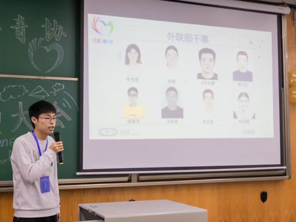 各个部门进的风采展示过后,进入材料青协会长王琰仪致辞环节。首先,王琰仪会长对新加入材料青协的新成员们表示热烈的欢迎,对莅临全员大会的嘉宾表示由衷的感谢。接着,她总结材料青协近年来的工作成果,感恩第十六届会长团的辛苦付出,并对材料青协的未来提出美好的展望,激励大家以炽热的志愿服务热情书写共同期许。话语有限,感情无限。