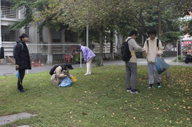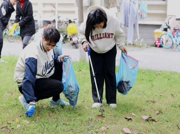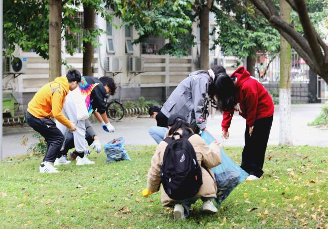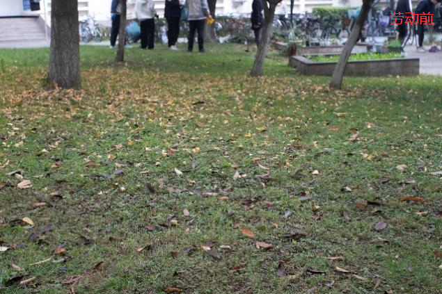 老师和员工们忙碌的身影在草坪上形成了一道独特的风景,每个员工都有分工,有的负责捡拾垃圾,有的负责归整落叶,有的负责整理摆放自行车。通过此次劳动实践,园区的环境得到明显改善,干净整洁,让美丽交大校园焕发光彩!