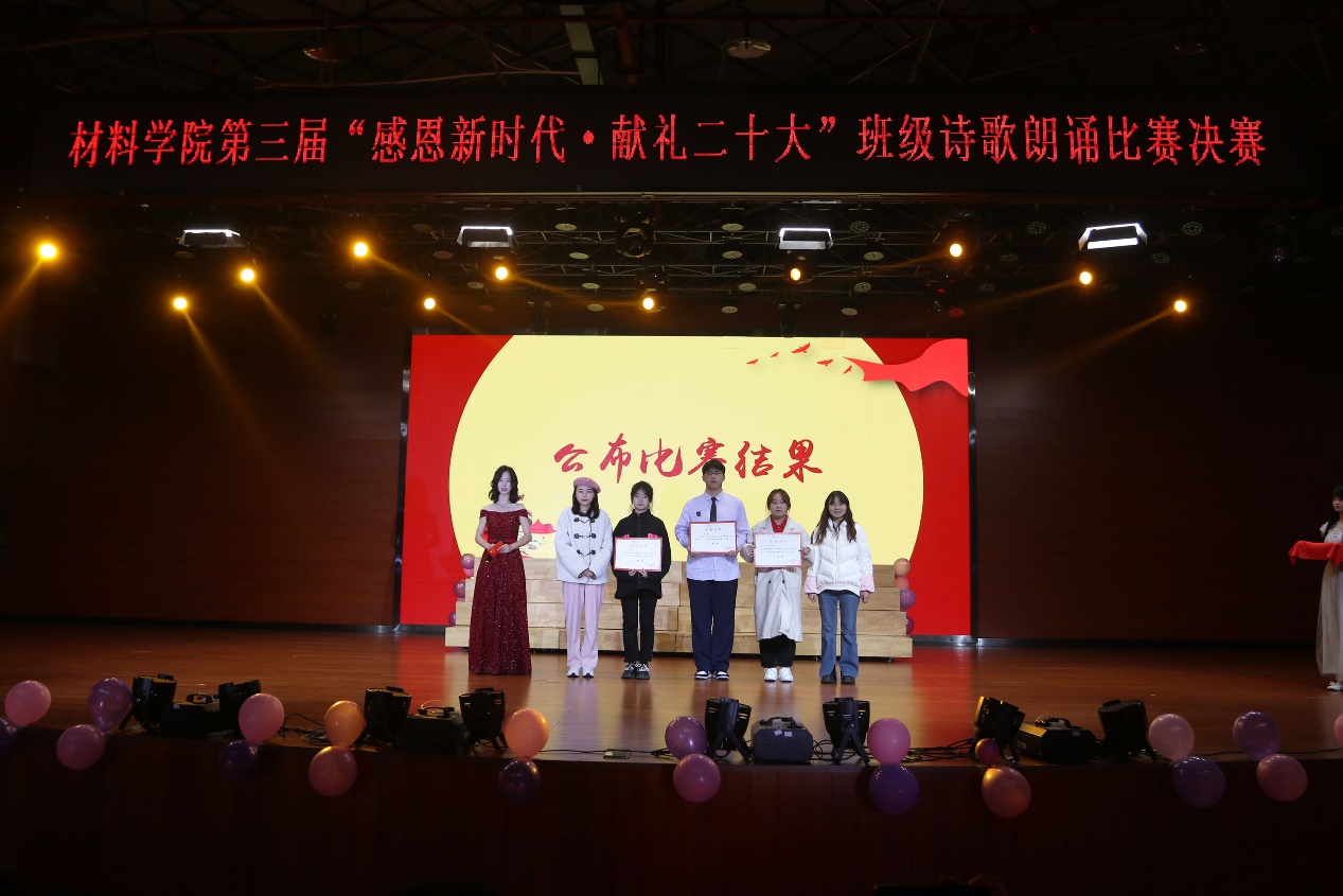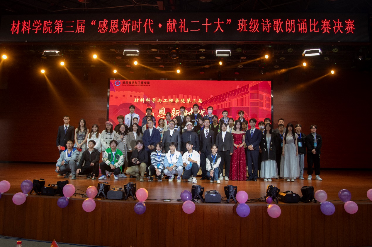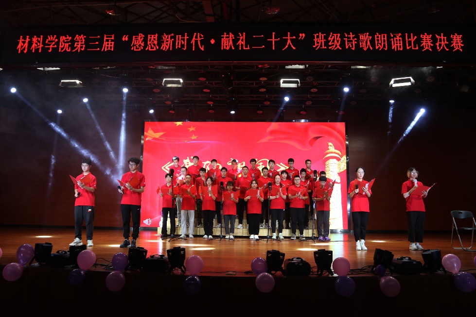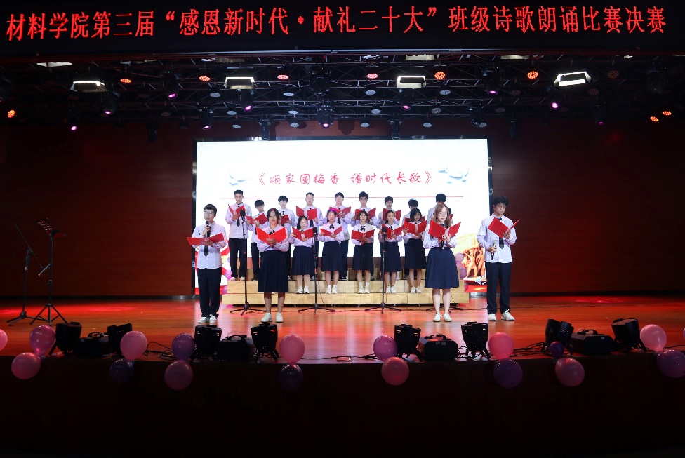 太阳集团tyc151班级诗歌朗诵比赛已连续举办三届,累计60多个班级参与、近2000人参加,有效地教育和引导材料青年坚定文化自信、弘扬民族精神。班级诗歌朗诵是一种以全员参与为目标的美育模式,是一种加强班级凝聚力促班风学风的良好形式,更是一种提升材料类专业员工审美和人文素养的艺术载体。