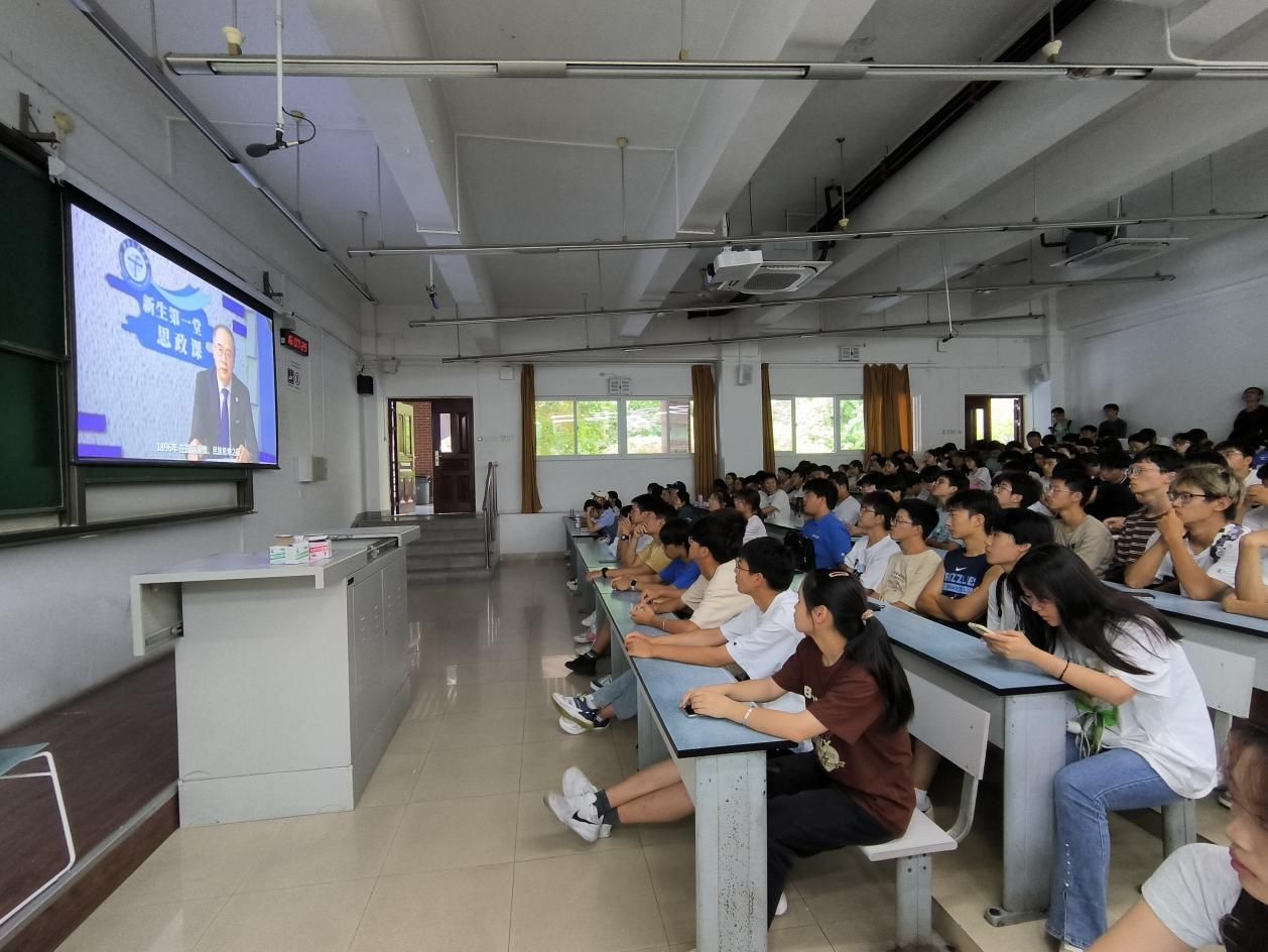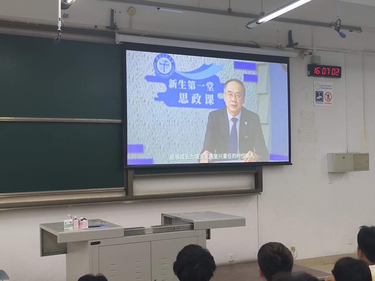 2023年9月21日下午,太阳集团tyc151本科2023级师生在X1212一起学习“新生第一堂思政课”。该思政课由公司党委书记余敏明为同学们讲授。余书记从传承红色基因、赓续红色血脉,矢志不渝听党话跟党起,讲述了老一辈交大人坚定的理想信念,不畏牺牲,勇于抗争的奋斗精神。