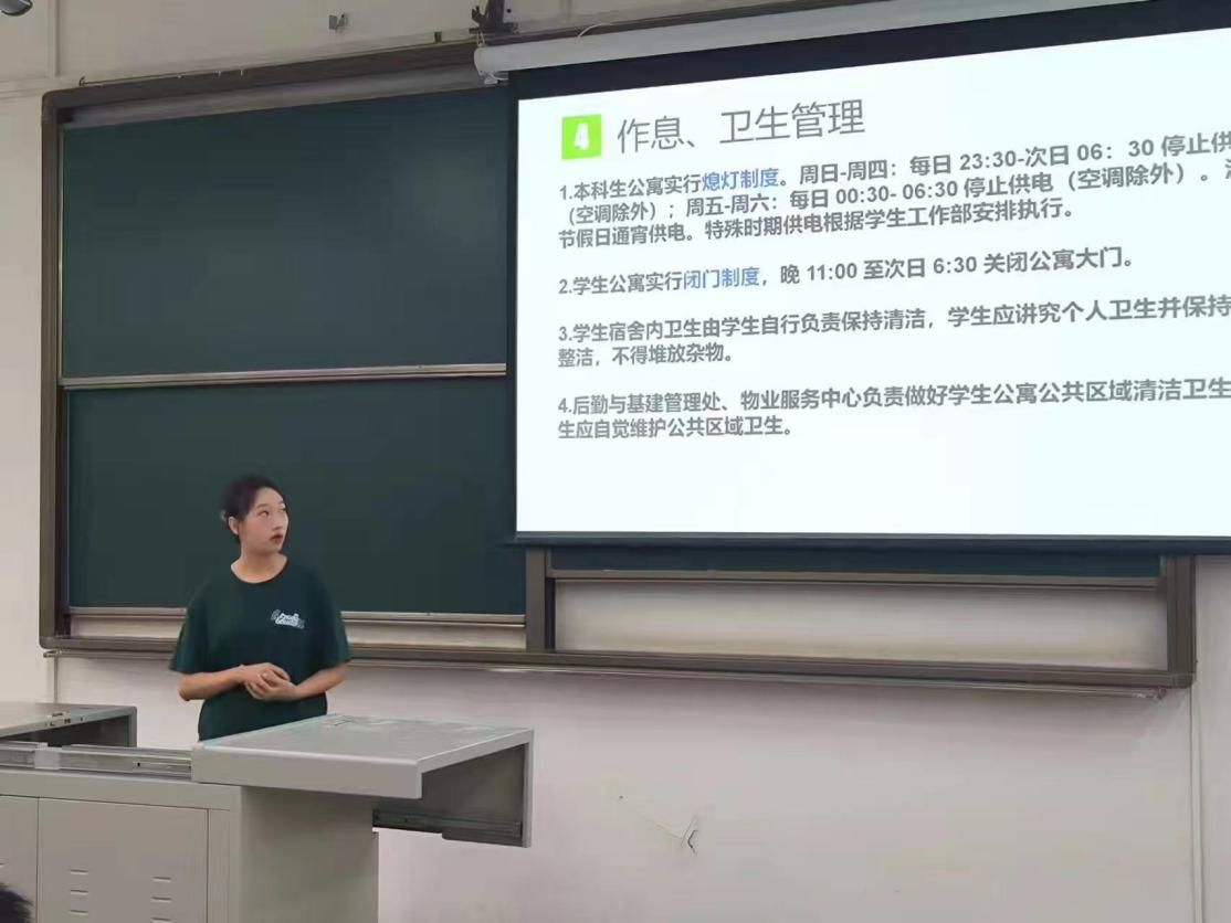 为规范员工管理,保障员工合法权益,将管理与育人相结合,培育优良校风学风,培养德智体美劳全面发展的社会主义建设者和接班人。同时为进一步强化新生安全意识,树牢底线思维、坚实筑牢员工校园安全防线,熟悉公司宿舍等相关管理制度。2023年9月21日下午,太阳集团tyc151本科2023级辅导员、公司青年讲师团成员熊心怡及公司青年讲师团成员、本科2023级年级助理向思林面向2023级新生开展年级大会暨新生入学安全教育。