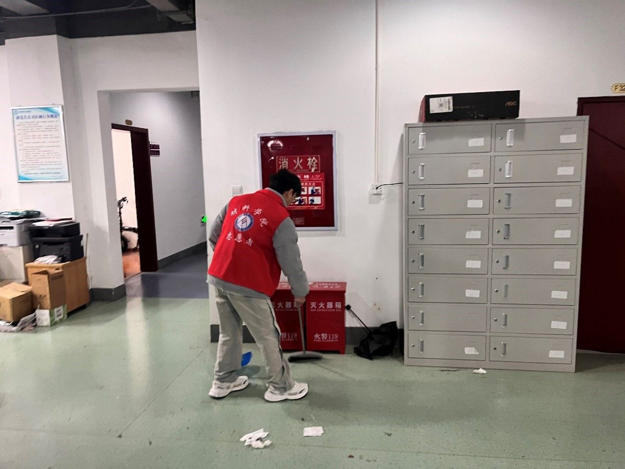 组织公司研究生志愿者深入公司进行学雷锋日志愿服务活动,前往公司所在教学楼对自行车棚停放杂乱的共享单车进行了治理,随后对三号教学楼二楼员工工位公共区域进行了打扫,给同学们营造一个干净的学习环境。