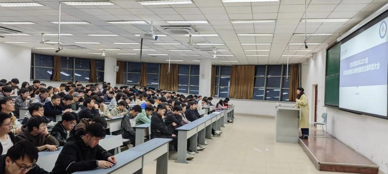 许欢围绕2025届毕业生毕业去向基础调研结果做整体分析,分享往届就业升学相关数据,指出了当前存在的“慢就业”“高期望”等问题,鼓励同学们提早规划、尽早准备。同时,希望大家“双管齐下”,做好就业、升学两手准备。最后,许欢提醒学业、毕业等相关事项,预告“冲刺2025材子起航计划”后期安排。