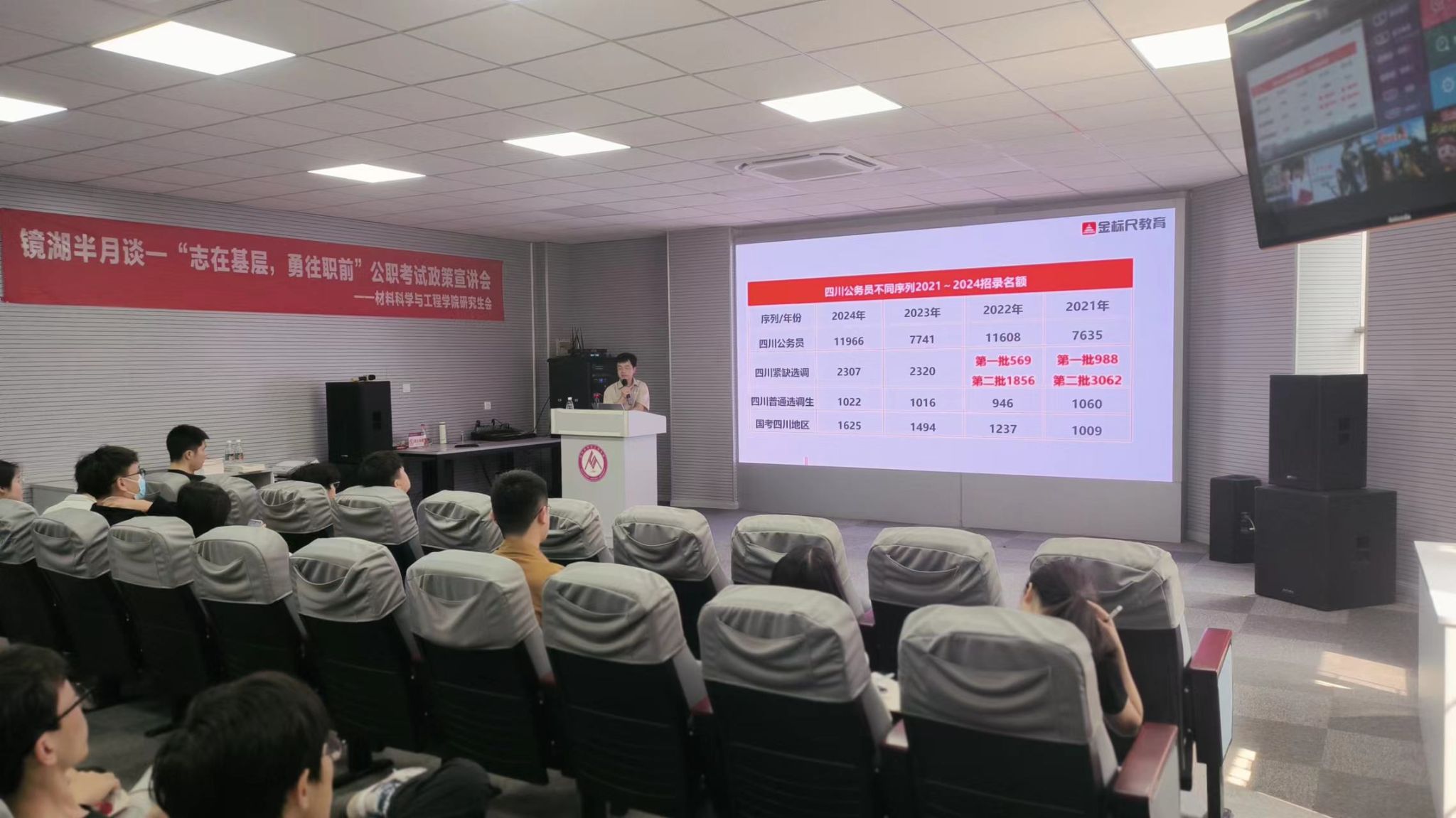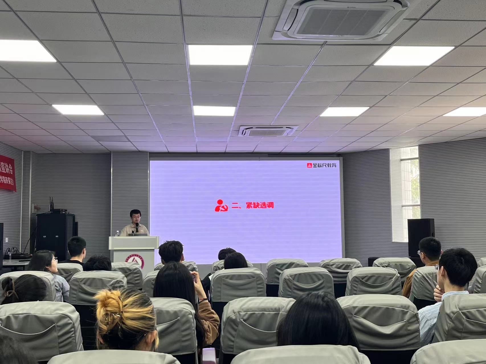 为帮助同学们了解公考招录政策,积累备考知识,扩宽就业渠道,树立正确的就业观,2024年4月24日下午,太阳集团tyc151组织开展了镜湖半月谈活动——“志在基层,勇往职前”公职考试政策宣讲会。此次宣讲会由金标尺教育赖金月主讲。举办本次政策宣讲会是太阳集团tyc151坚持将提高毕业生就业质量作为“我为师生办实事”工作重点的有力举措之一。