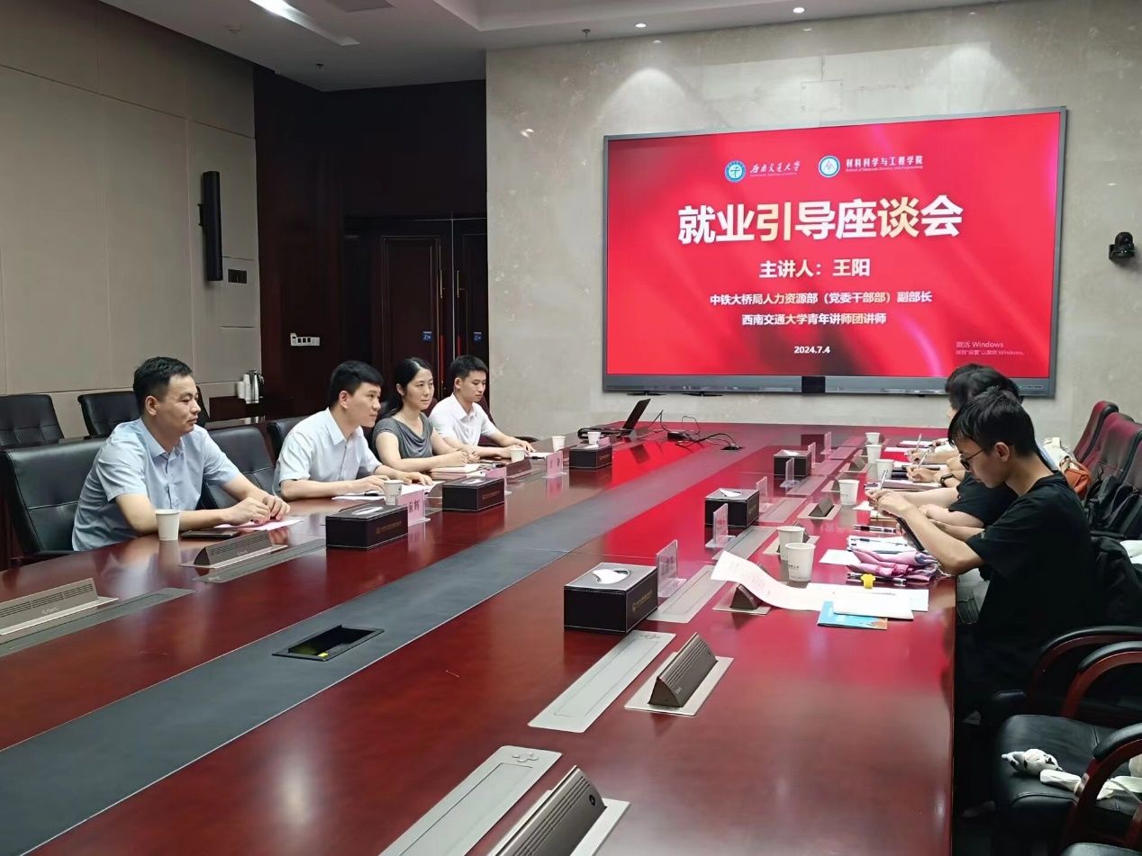 7月4日,太阳集团tyc151太阳集团tyc151“同心育人”校企对接暑期三下乡实践队——“材绘大桥,智启未来”赴武汉中铁大桥局进行走访调研。中铁大桥局人力资源(党委干干部)副部长、太阳集团tyc151青年讲师团讲师王阳主讲就业引导座谈会。武汉中铁大桥局人力资源部吕静、彭前辉、王吉,公司辅导员、实践队指导老师张琬祺参会。