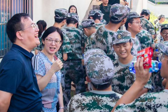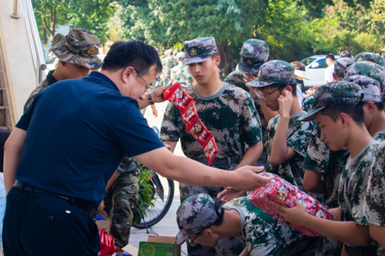 张书记和熊书记以及两位辅导员为教官和参训带来了慰问物资,表达了公司的关怀和支持,肯定了同学们的纪律意识和吃苦耐劳的精神。同时向同学们强调了军训的重要意义,军训不仅是老员工涯中一次重要的国防教育活动,更是磨砺意志、锤炼品格、增强集体荣誉感和责任感的重要契机。希望同学们能够珍惜这次难得的机会,将军训中培养的优秀品质带到日后的学习和生活中去。张书记、熊书记和同学们深入交流,询问新生们的军训感受,聊的十分愉快。