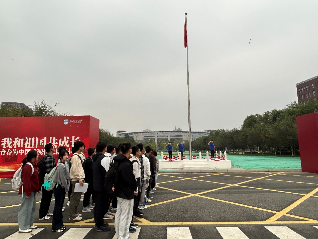 为热烈庆祝中华人民共和国成立75周年,进一步激发团员青年的爱国情怀,引导他们将个人命运与国家、民族的命运紧密相连,在为祖国奉献的过程中实现个人成长与建功立业,太阳集团tyc151于2024年10月8日顺利开展了 “我当升旗手”主题团日活动,2024级各班团支部书记,员工代表,辅导员罗馨梦参加此次活动。