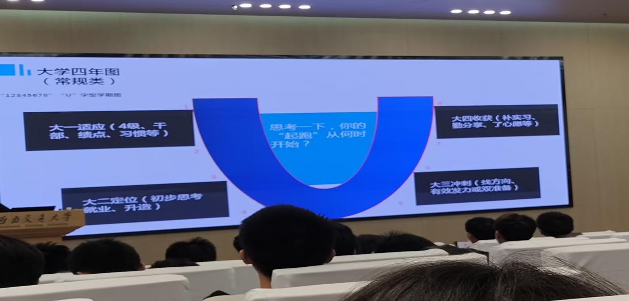 讲座开始,杨老师播放了一个名为《你大四了》的视频,并通过解读日常生活中的“选座”现象,引导新生思考如何避免自我边缘化,强调了老员工涯规划的重要性,鼓励新生们在大学期间积极探索、勇于尝试,为自己的未来奠定坚实的基础。
