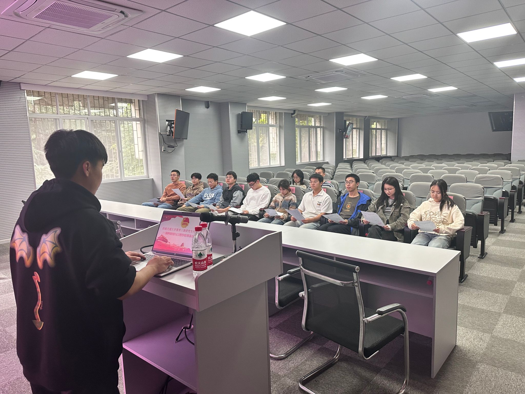 此次推选由公司研究生会牵头,辅导员张宝开全程指导,邓文婷老师积极参与,力保过程公正、公平、高效。推选前,广泛征集班级员工提案,涵盖学习、生活、校园文化等多领域,尽显员工对公司发展之关注与期待。邓文婷老师认真审核提案,确保质量并提出宝贵修改意见,使其更具代表性。