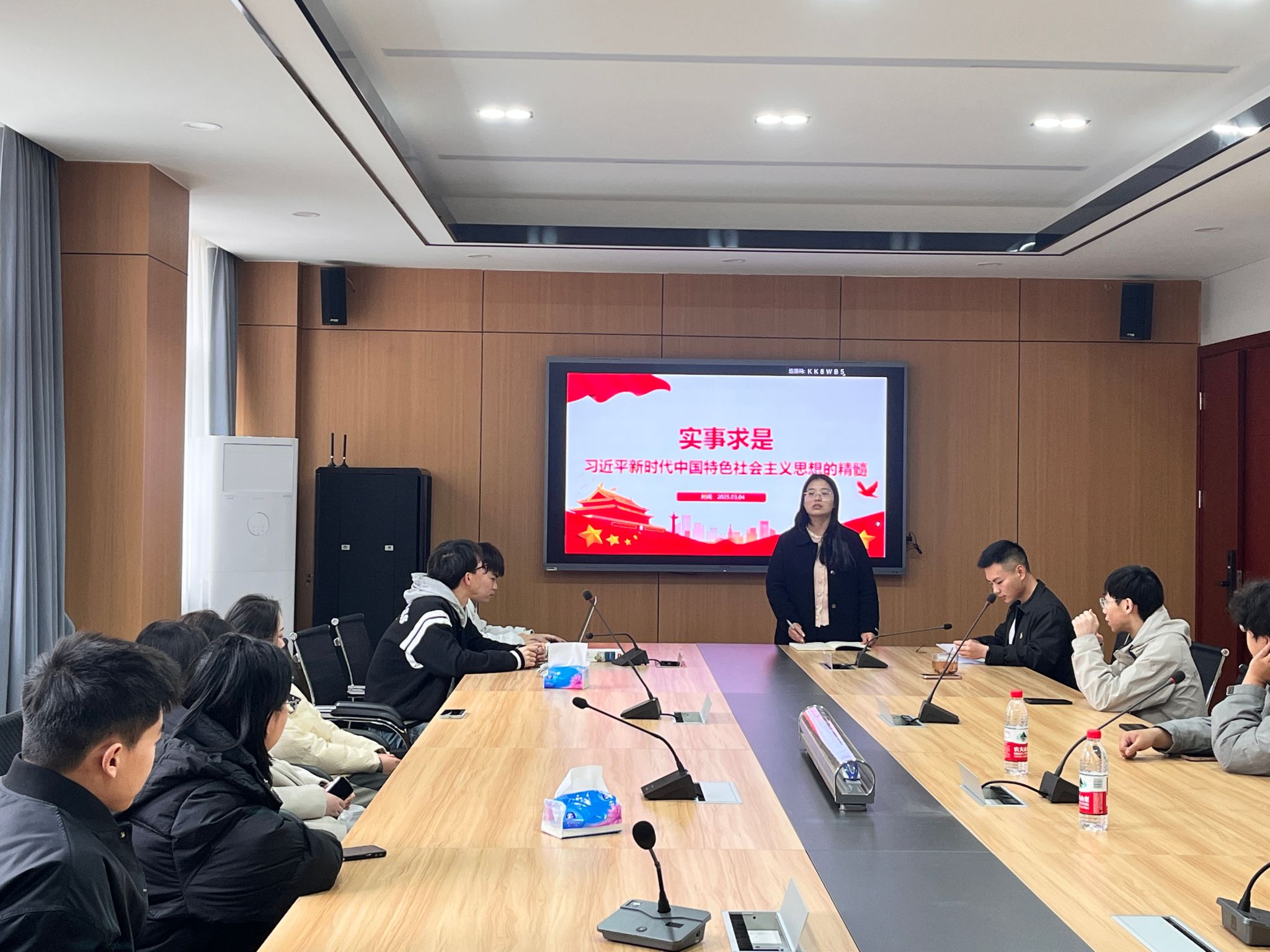 活动当日,研会成员运用多媒体演示,全面且深入地呈现了习近平新时代中国特色社会主义思想的核心要义、精神实质、丰富内涵和实践要求。王誉静老师积极与同学们互动交流,鼓励大家发表自己的看法,引导同学们将理论与实际相结合,思考如何在学习和生活中践行这一伟大思想。