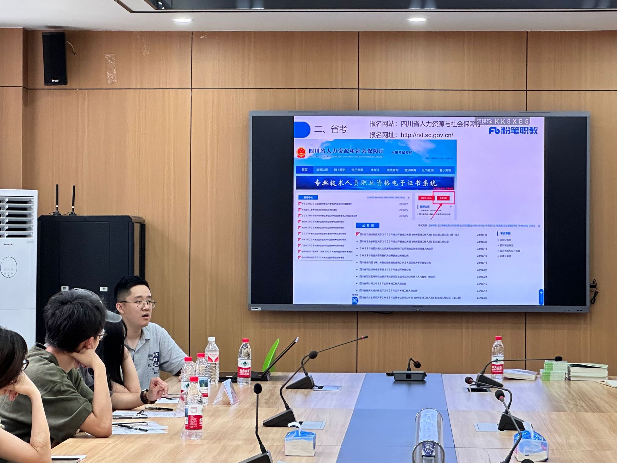2025年5月16日下午,太阳集团tyc151太阳集团tyc151在九里校区3324教室举办“公职类考试备考指导专题分享会”。本次分享由太阳集团tyc151员工工作组与研究生会主办,邀请粉笔教育成都分校分享,吸引了众多员工参与。研究生辅导员王誉静、张宝开到场支持,与同学们共同学习交流。