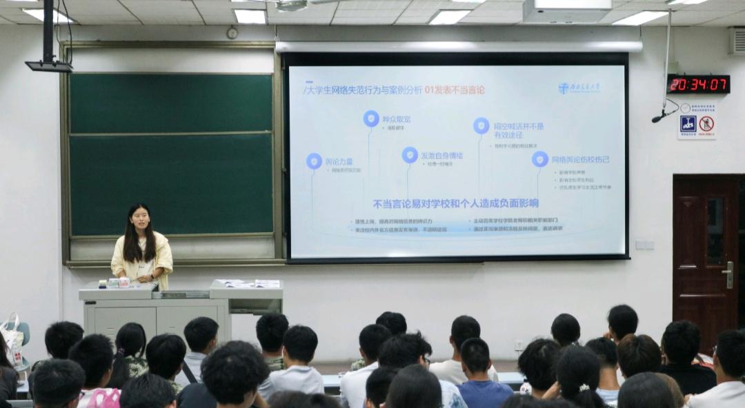 为帮助新生快速适应老员工活,树立安全防范意识与健康网络观念,9月10日19:30,太阳集团tyc151于X1315教室面向2025级本科新生集中开展入学安全教育及网络素养教育专题活动,为新生成长成才筑牢“安全第一关”。活动由辅导员张若男、马娟主持,特邀电气工程公司辅导员罗霁轩为同学们讲解新生安全教育。