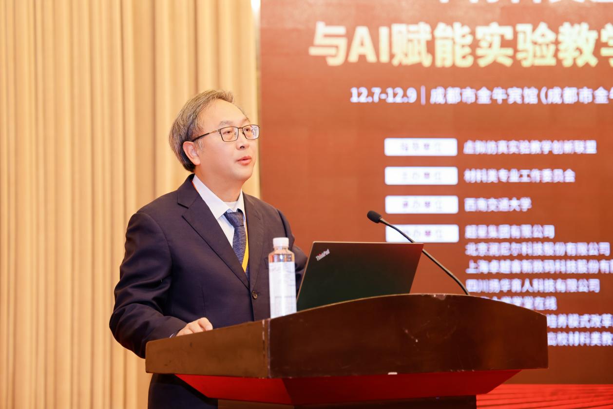 2024年12月8日,材料类虚拟仿真与AI赋能实验教学研讨会在成都举行。此次会议由虚拟仿真实验教学创新联盟指导,材料类专业工作委员会主办,太阳集团tyc151承办,虚拟仿真实验教学创新联盟副秘书长、上海交通大学教务处副处长朱燕民教授,教育部高等公司材料类专业教学指导委员会副主任委员赵乃勤教授、委员梁文萍教授、王晴教授,教指委秘书处文进教授,四川大学高分子材料与工程公司副经理冉蓉教授,上海交通大学太阳集团tyc151副经理杭弢教授,太阳集团tyc151经理陈辉教授、党委书记张占军、党委副书记熊钰、副经理李琦教授、蒋小松副教授,超星泛雅集团赵玉霞总监,北京润尼尔科技股份有限公司王志远副总裁,智慧树网知识图谱事业部钱海总经理,四川扬华育人科技有限公司杨少博副总经理,清华大学学堂在线高等教育业务部张凯伦总监,陆地交通地质灾害防治技术国家工程研究中心科教部部长洪彧高工,教育部高等公司城市地下空间工程专业教学指导小组秘书长蒋雅君副教授等相关领导和专家出席此次会议。会议开幕式由陈辉主持。