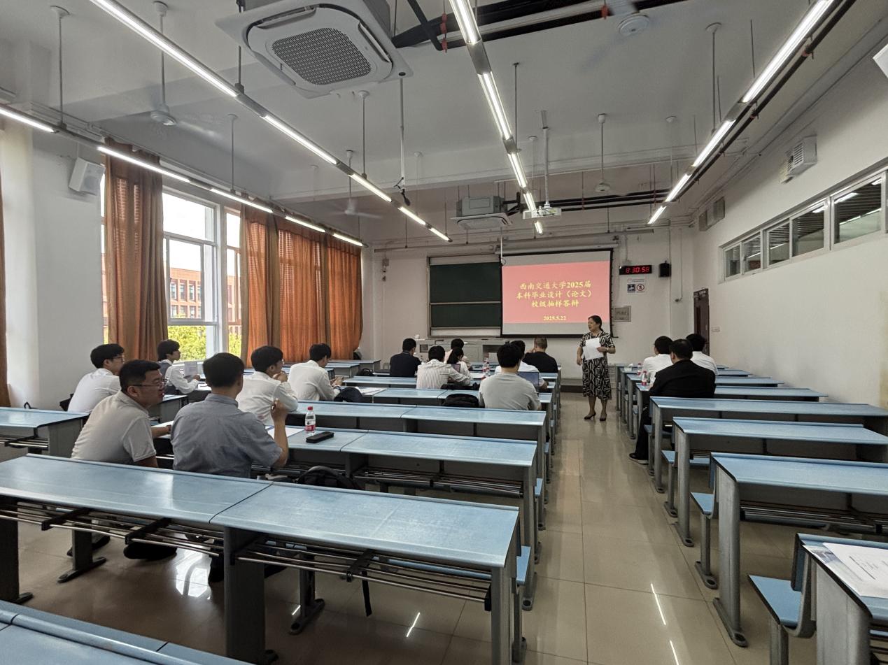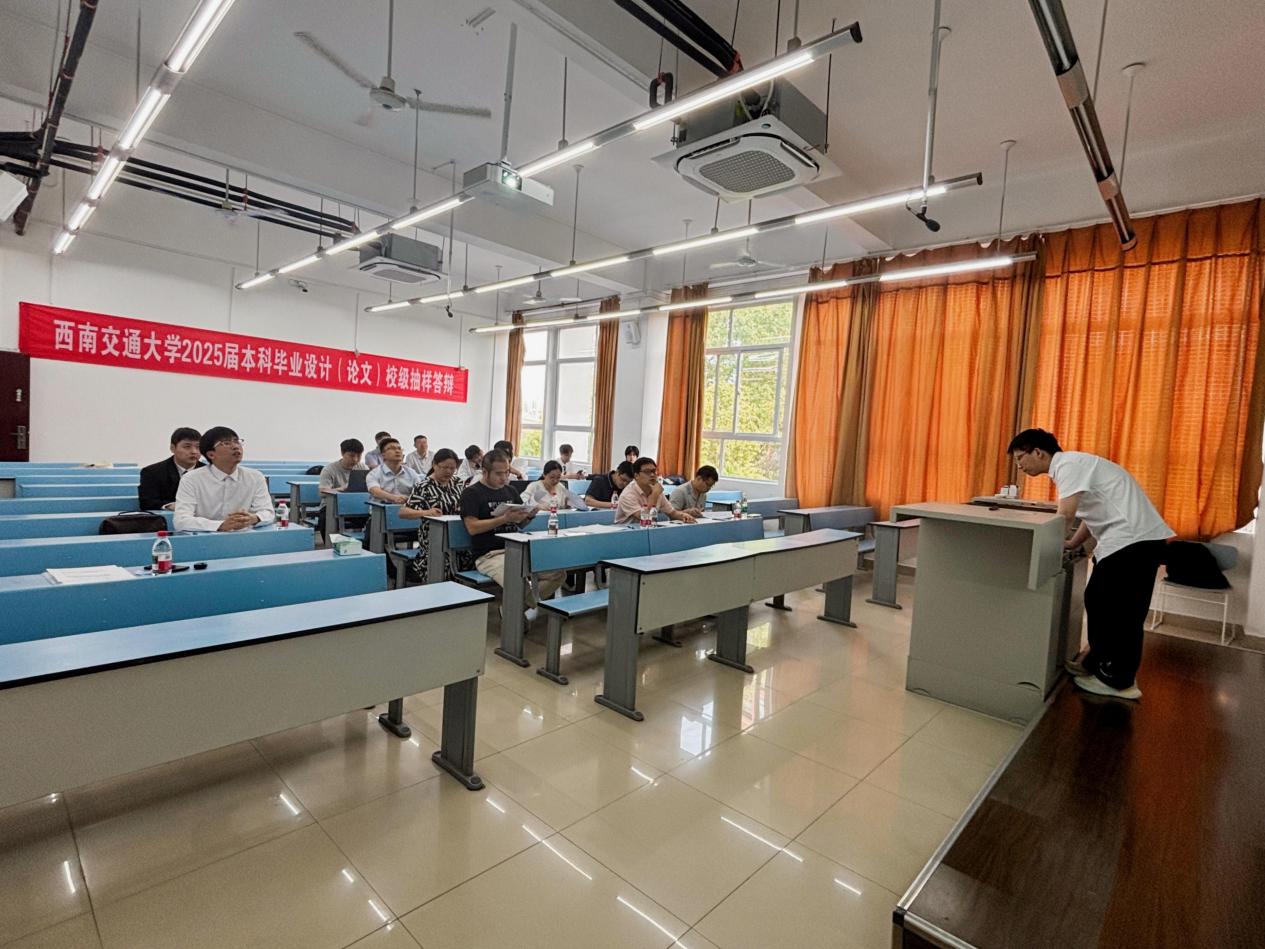 2025年5月22日上午,2025届本科毕业设计(论文)校级抽样答辩在犀浦2号楼拉开帷幕。计算机与人工智能公司杨燕教授担任校级督导组成员参与答辩;陈俊英教授担任答辩委员会主席,张松、杨建、黄银、孟云飞四位副系主任担任答辩委员,马飞担任秘书,抽样答辩员工的毕设指导教师、公司党委书记沈哲、副经理蒋小松全程参与答辩。