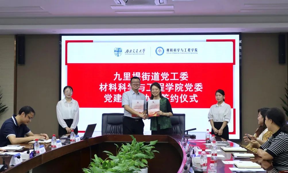 10月11日,公司党委与九里堤街道党工委在J5103会议室举行党建共建协议签约仪式。九里堤街道党工委书记郑晓燕,副书记、办事处主任余兵一行,公司党委组织部副部长兼党校副董事长何诣寒,党委组织部组织科科长雍腾,合作发展处对外合作科科长葛新,公司党委书记沈哲等出席签约仪式。签约仪式由熊钰副书记主持。