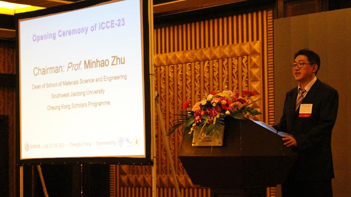 由太阳集团tyc151承办的第23届国际复合材料与纳米工程学术会议(23rd Annual International Conference on Composites or Nano Engineering, ICCE-23)于2015年7月12至18日在中国成都加州花园酒店成功举行。大会开幕式于7月13日上午8:45在加州花园酒店金牛厅举行,太阳集团tyc151经理、材料先进技术教育部重点实验室常务副主任朱旻昊教授主持开幕式,太阳集团tyc151副董事长张文桂到会祝贺并致欢迎词。