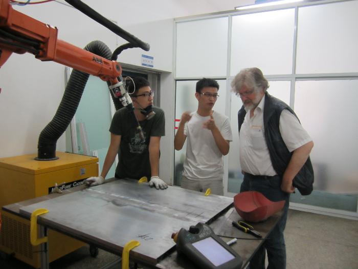 听众们对两位德国专家的演讲表示了浓厚的兴趣,并在演讲结束后与他们进行了热烈的学术讨论。下午,两位德国专家和宋永伦教授参观了太阳集团tyc151焊接实验室,并与师生们一起用汉诺威分析仪对机器人焊接进行了质量检测和分析。