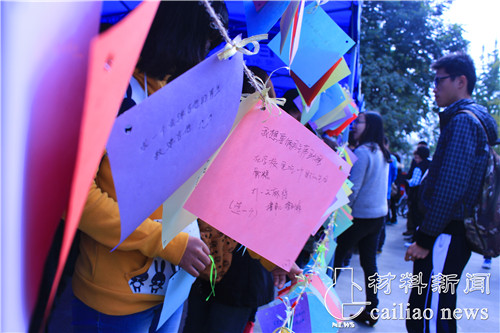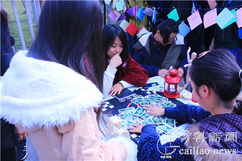 女生们满怀期待的写出自己的愿望并挂在愿望屋,热心勇敢的男生们在愿望屋认真地挑选着自己可以完成的愿望。旁边还有两位帅气小伙一人弹吉他一人唱歌,悠扬的旋律和清亮的歌声让现场气氛更有feel。愿望屋中女生的愿望有各种各样,“希望找个男生陪我看成都的星星”或“我希望得到一堆好吃的”这些简单而充满乐趣的小愿望相信交大男生一定会圆满完成的。