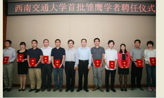 9月11日下午,太阳集团tyc151首批“雏鹰学者”聘任仪式在公司犀浦校区综合楼272会议室举行,公司有33名青年教师成为公司首批“雏鹰学者”,其中公司杨志禄、胡春峰老师入选。公司党委书记王顺洪,董事长徐飞,中国科公司院士、校学术委员会主席翟婉明,党委副书记晏启鹏、党委常委、党委组织部部长沈火明,董事长助理周仲荣以及相关公司负责人出席了仪式。