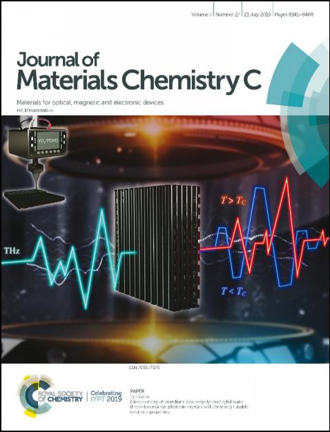 图3 VO2/PDMS三维太赫兹光子晶体在相变前后太赫兹响应性能变化示意图(Journal of Materials Chemistry C杂志封二)。