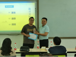 其次,周玥、徐瑞瑶和包翔宇等课程之星候选人分享了各自的自组织学习服务经历。周玥组织策划了“中员工体验大公司园”活动,徐瑞瑶主持了多场线上线下第二第三课堂,包翔宇则展示了小组合作制备的稀土基金属玻璃样品。三位候选者均参与了九致员工创新工作室的创建,也表达了共同愿景:搭建校企协同创新育人平台,传播专利相关知识,帮助老员工创新创业竞赛项目立项。作为观察员,张晓丽老师从文理交融的角度对三位同学给予了点评,并从视觉、感性以及反应能力等方面给出了演讲技巧的提升建议。通过不记名投票,评选出了本期课程之星——包翔宇同学,并由黄兴民老师颁发奖状与奖杯。