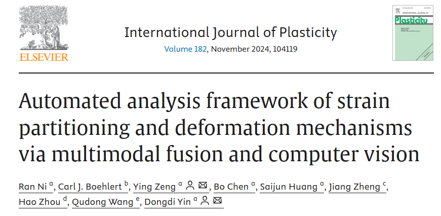 近日,公司尹冬弟教授、曾迎副教授,博士生倪然等针对上述难题,基于多模态数据融合和计算机视觉,提出了一种应变分配与变形机制的自动分析框架,并成功应用于Mg-Y合金的变形研究,从而验证了此分析框架的有效性。此算法特别考虑了晶内和晶间的变形协调与竞争关系,可以在纳米分辨率与大视场下,自动地、统计地、定量地分析晶内滑移活性、晶间滑移转移、晶界滑移、以及相关的应变分配。此框架可以帮助深入理解包括镁合金在内的金属材料的变形行为与协调机制。相关工作以“Automated analysis framework of strain partitioning and deformation mechanisms via multimodal fusion and computer vision”为题发表在金属材料和固体力学领域高水平期刊International Journal of Plasticity。论文主要合作者还包括密歇根州立大学Carl J. Boehlert教授、辽宁材料实验室周浩研究员,重庆大学郑江副教授,上海交通大学王渠东教授。