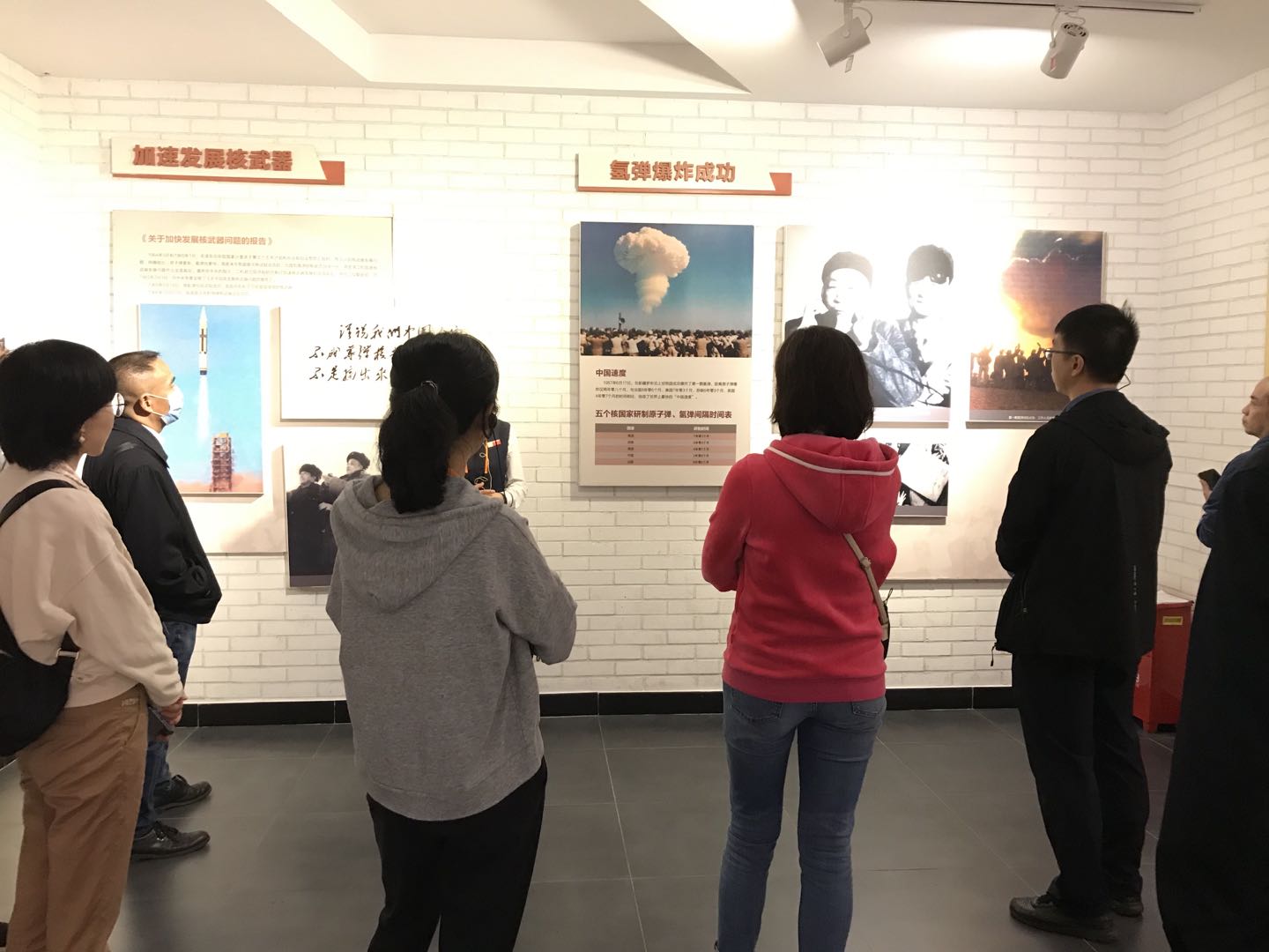 在讲解员的带领下,党员们怀着无比激动的心情参观了“两弹历程馆”。实物陈列、图文展示、场景模拟,一张张珍贵的历史图片,一份份详实的文献资料,通过讲解员生动地讲解,大家更真切地感受到老一辈科学家们为了党和国家的事业无私奉献、奋斗不息的忘我精神和爱国情怀。爱国奉献、艰苦奋斗、协同攻关、求实创新、勇攀高峰的两弹精神感染了在场的每一名党员。